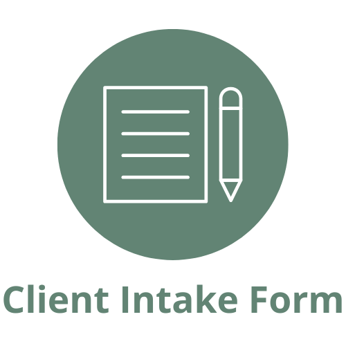 Icon of a piece of paper and a pen inside a green circle with the text "Client Intake Form" below.